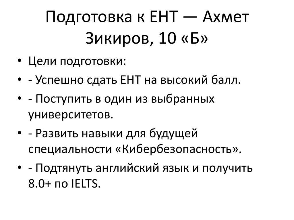 Подготовка к ЕНТ — АхметЗикиров, 10 «Б»