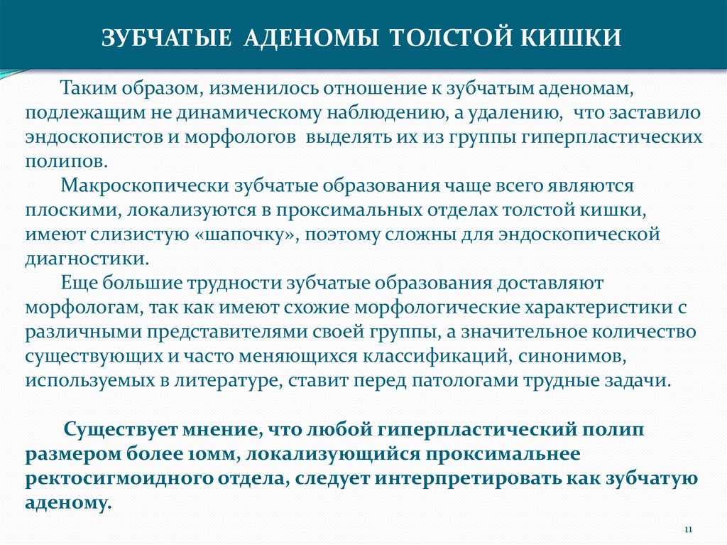 ЗУБЧАТЫЕ АДЕНОМЫ ТОЛСТОЙ КИШКИТаким образом, изменилось отношение к зубчатым аденомам,