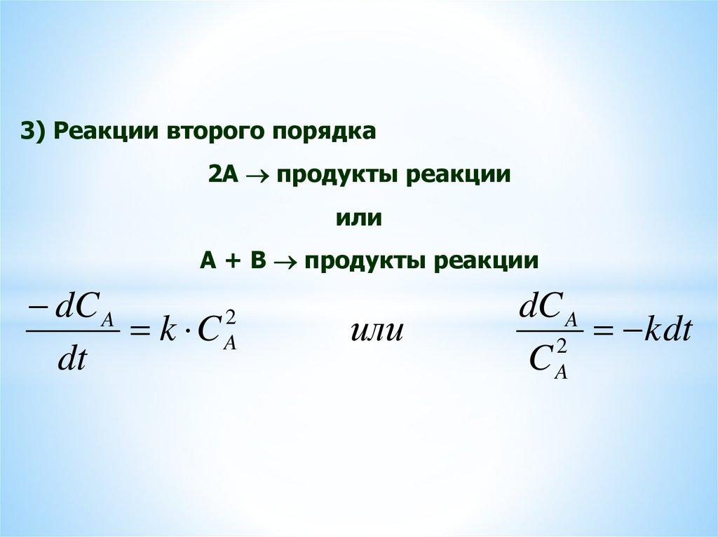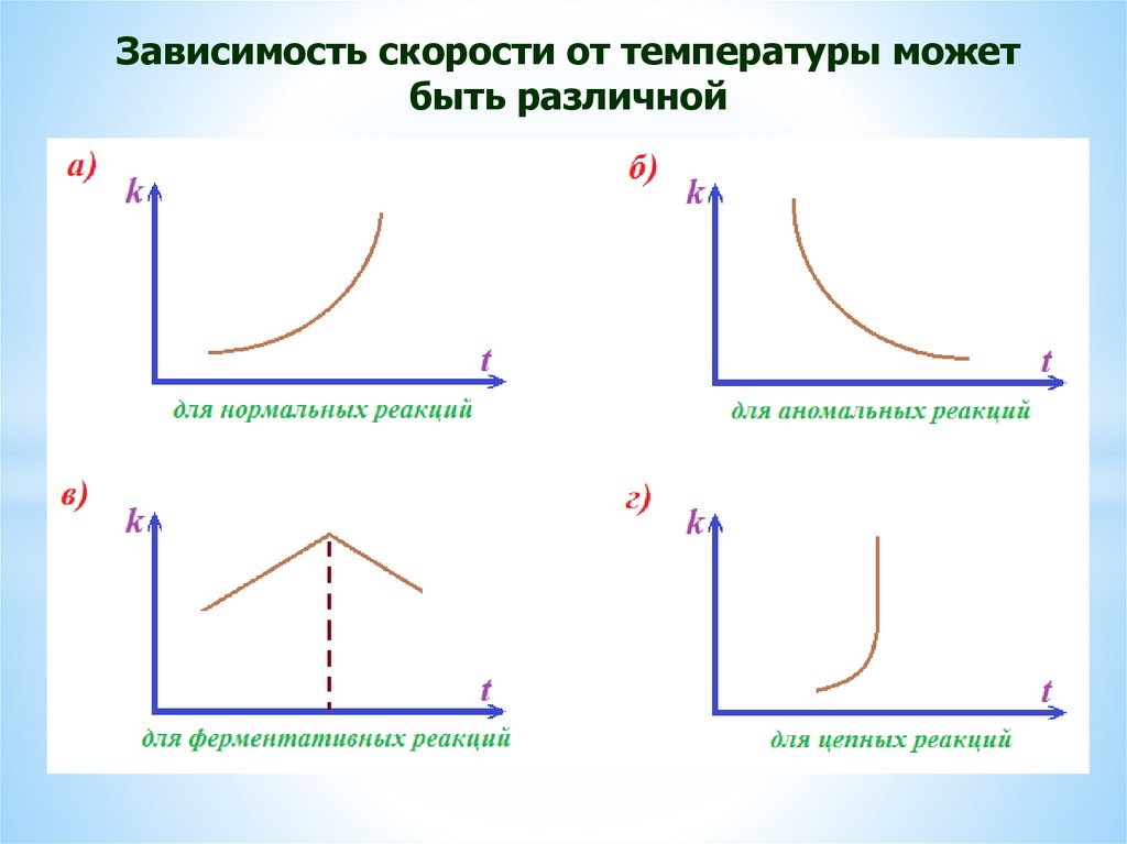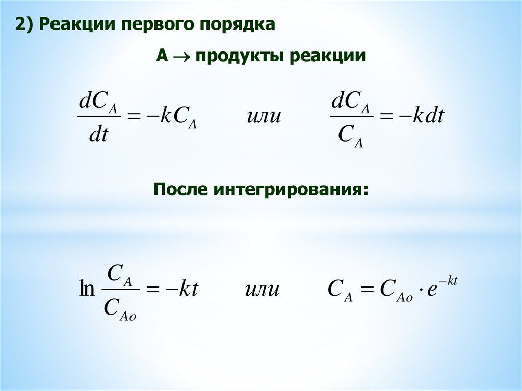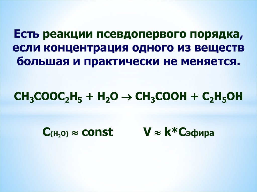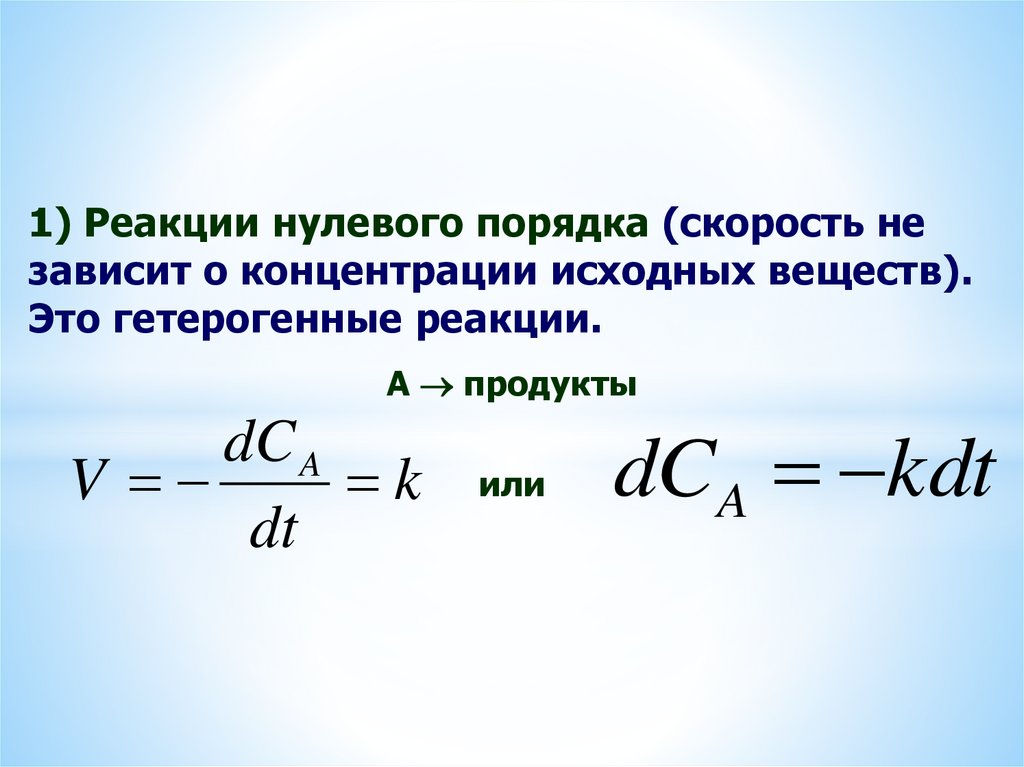 1) Реакции нулевого порядка (скорость независит о концентрации исходных веществ).