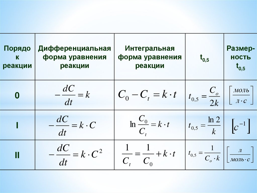 Кинетическое уравнение реакции –функциональная зависимость