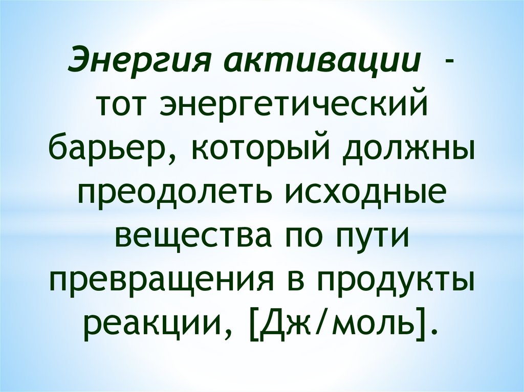 Энергия активации тот энергетическийбарьер, который должны