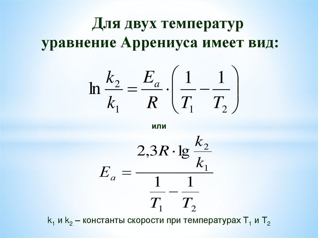 Для двух температуруравнение Аррениуса имеет вид: