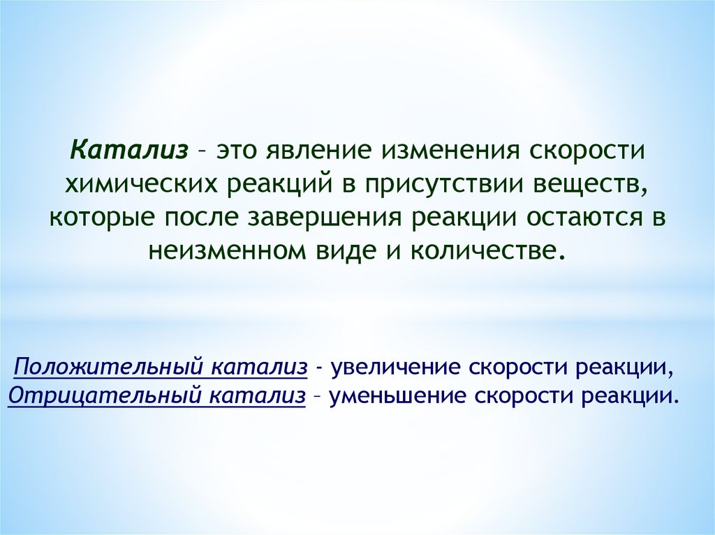 Положительный катализ - увеличение скорости реакции,