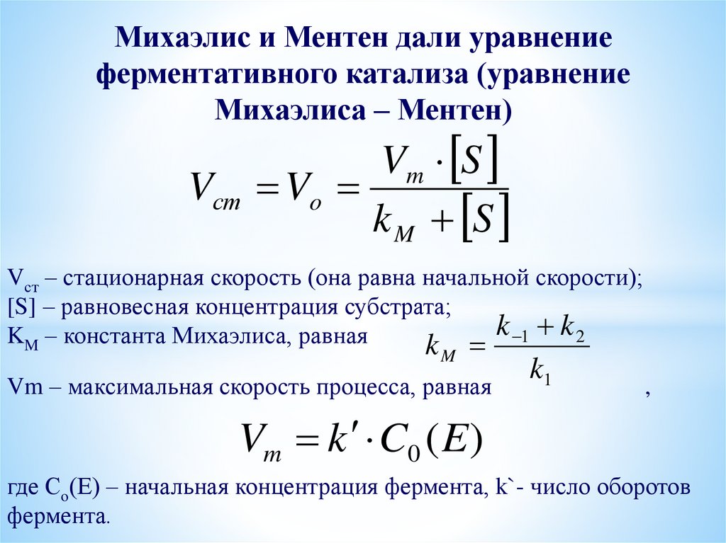 Михаэлис и Ментен дали уравнениеферментативного катализа (уравнение
