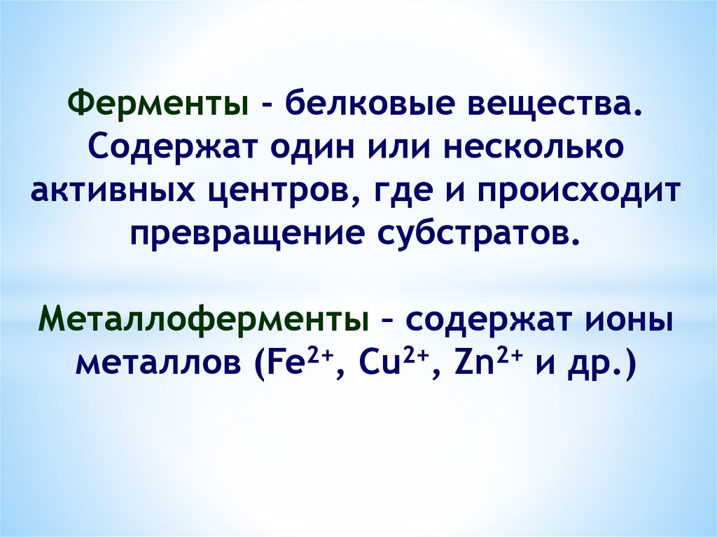 Металлоферменты – содержат ионы