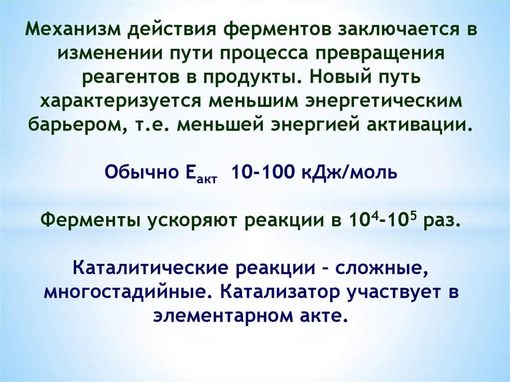 Механизм действия ферментов заключается визменении пути процесса превращения