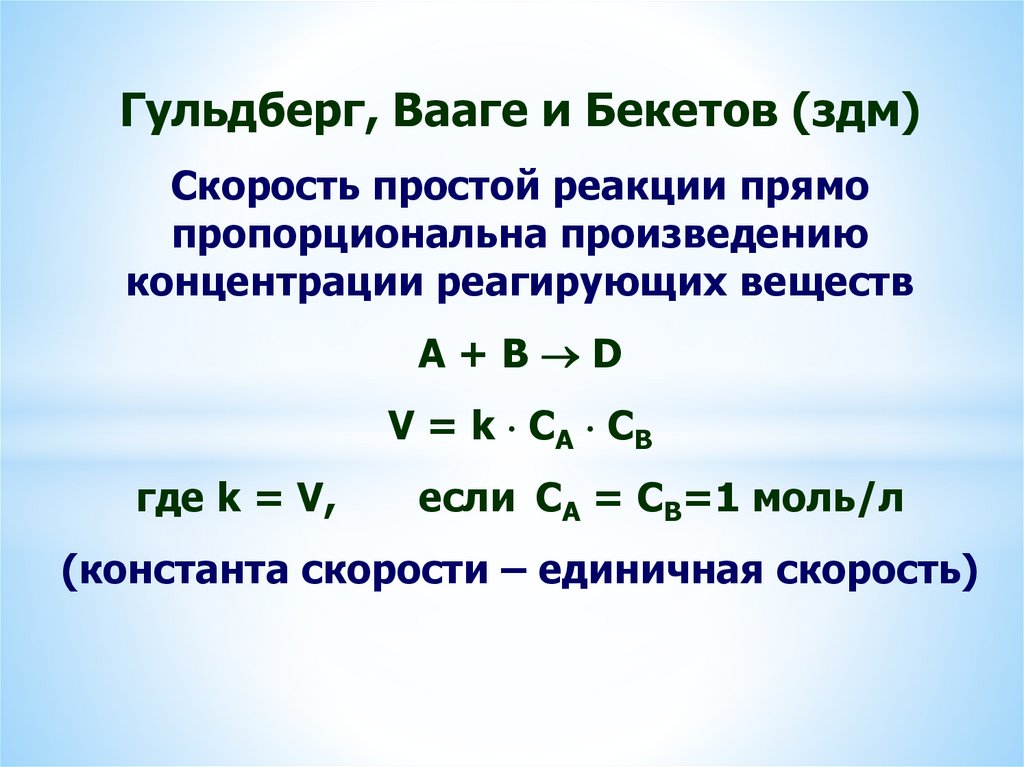 Гульдберг, Вааге и Бекетов (здм)Скорость простой реакции прямо