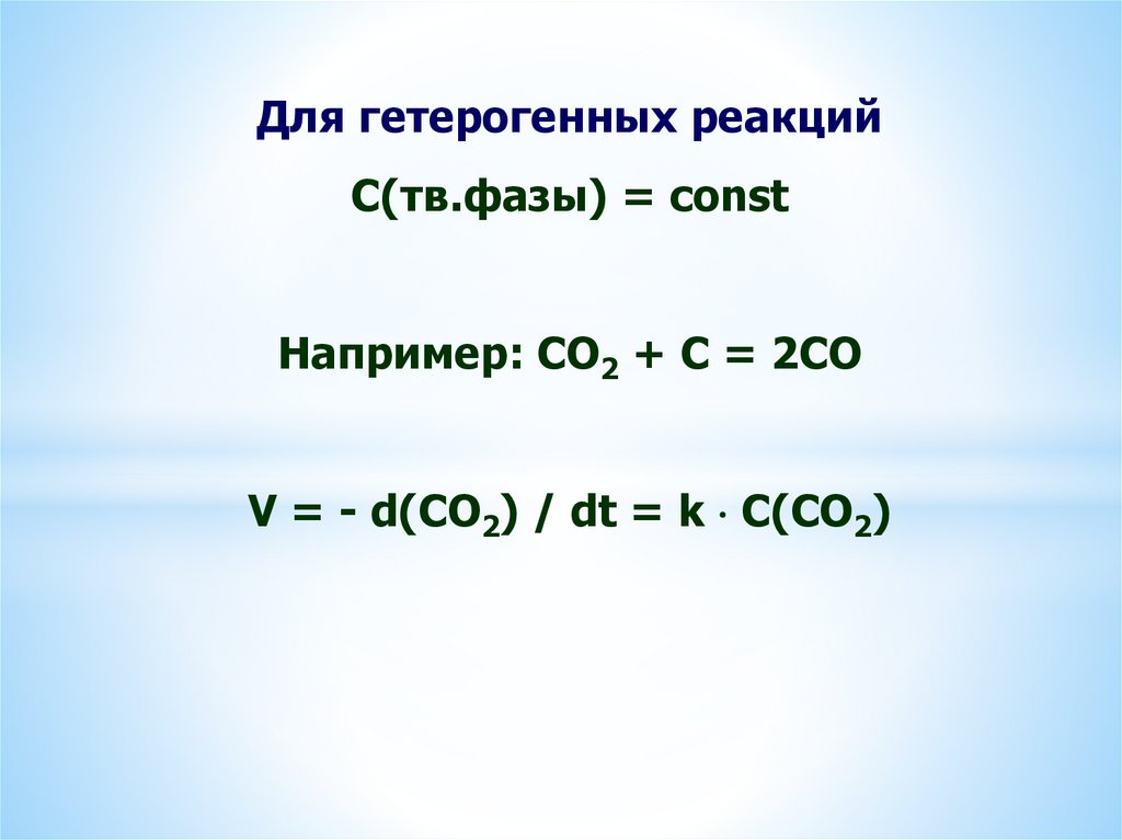 Для гетерогенных реакцийС(тв.фазы) = const