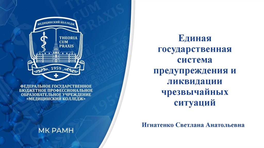 Учебные вопросы:1. Единая государственная система предупреждения и