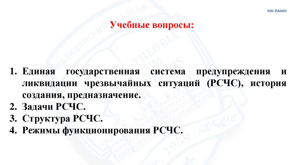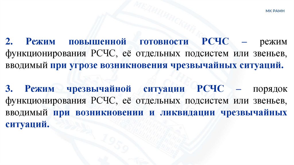 3. Режим чрезвычайной ситуации РСЧС – порядок