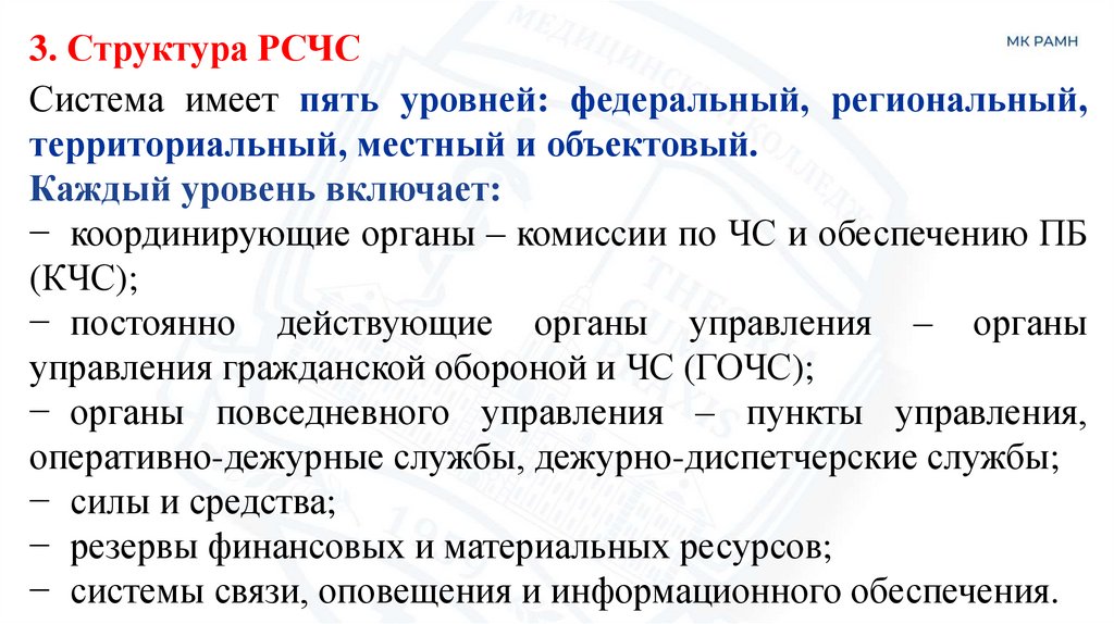 3. Структура РСЧССистема имеет пять уровней: федеральный, региональный,