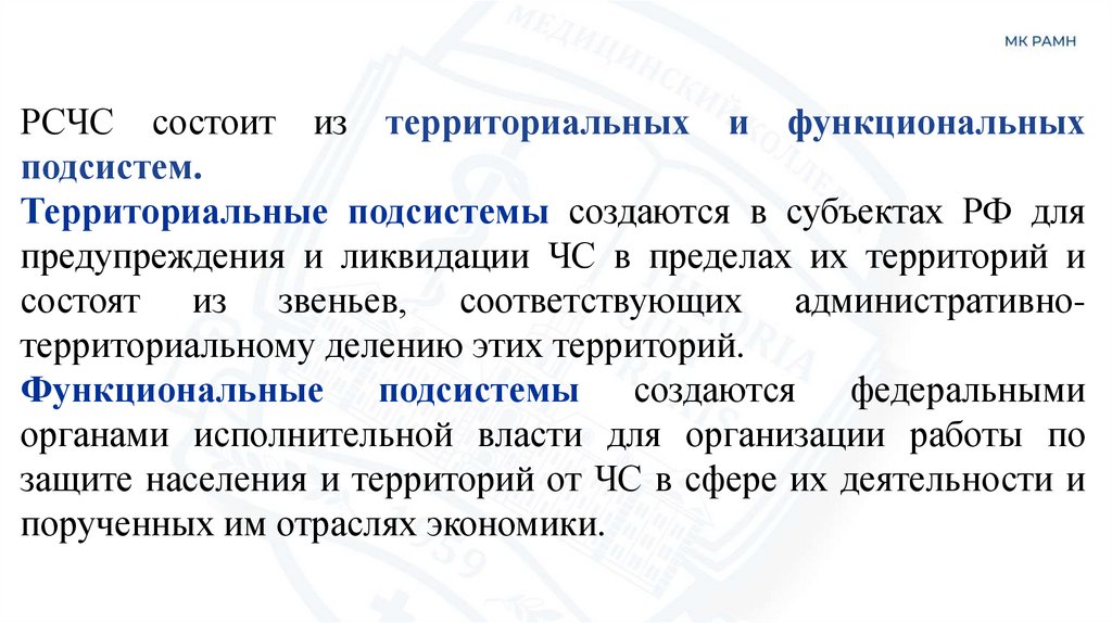 РСЧС состоит из территориальных и функциональныхподсистем.
