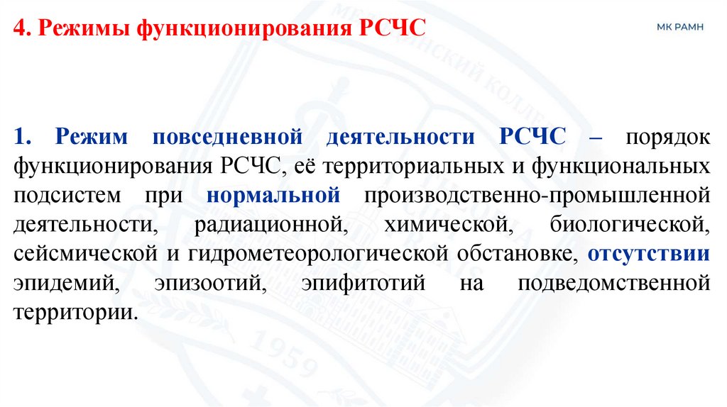 4. Режимы функционирования РСЧС.
