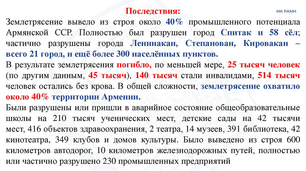 Армянской ССР. Полностью был разрушен город Спитак и 58 сёл;