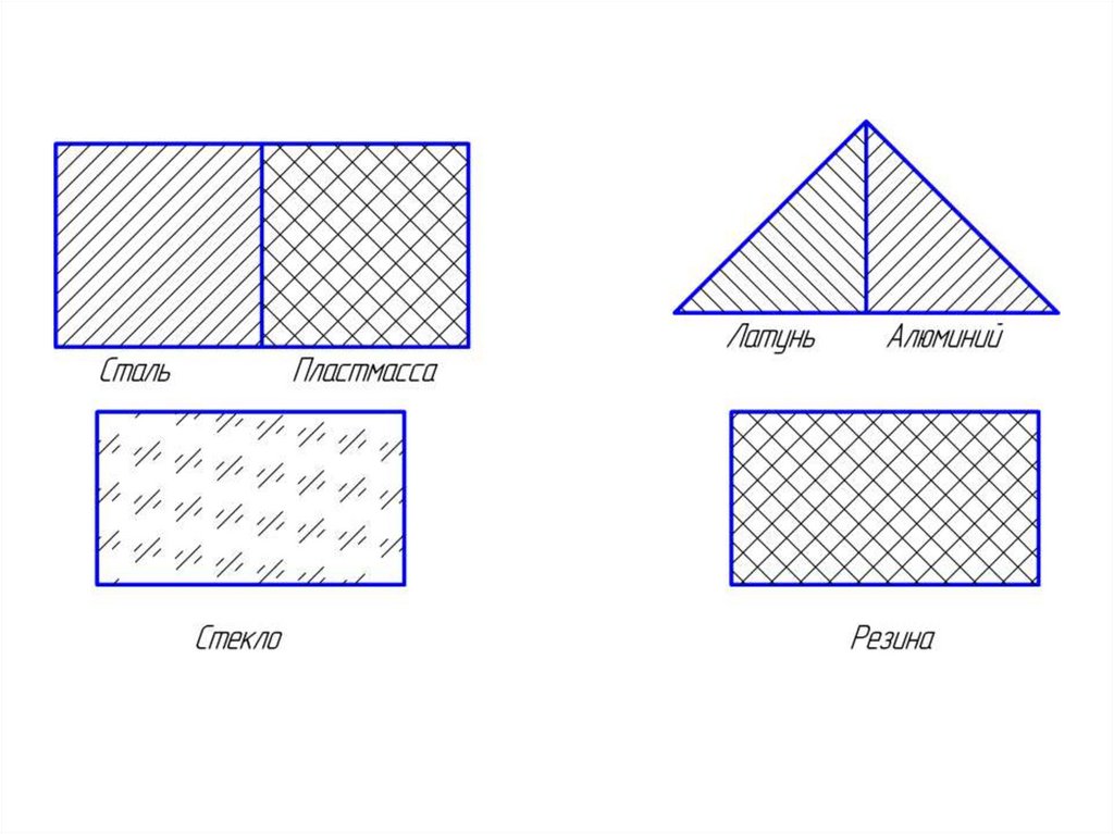 Задание. Выполнить штриховку на изображениях взависимости от материала: