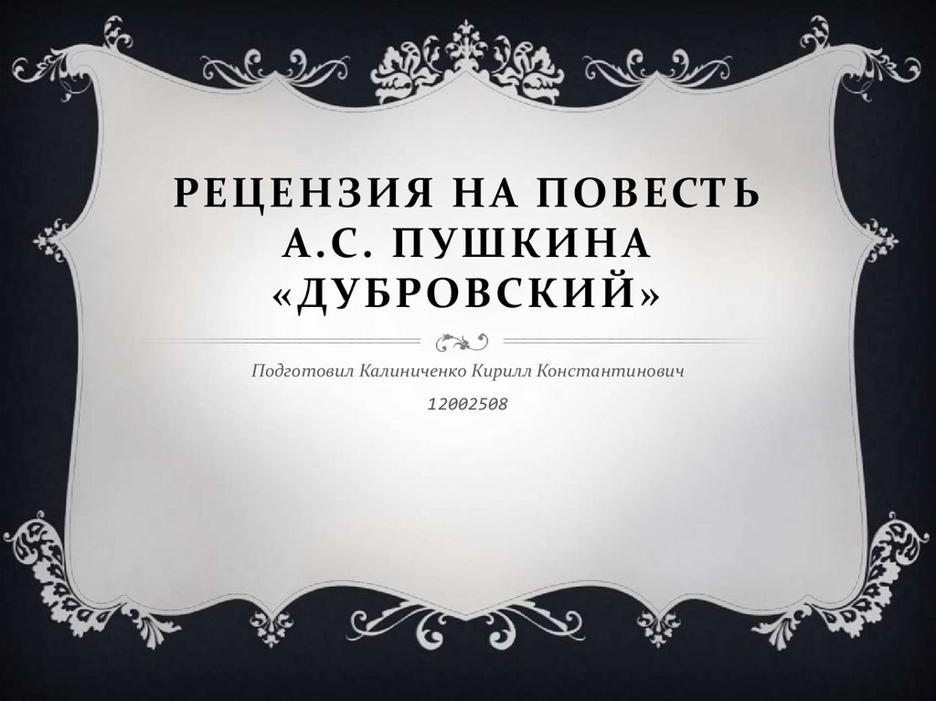 1. Рецензия на повесть А.С. Пушкина «Дубровский»