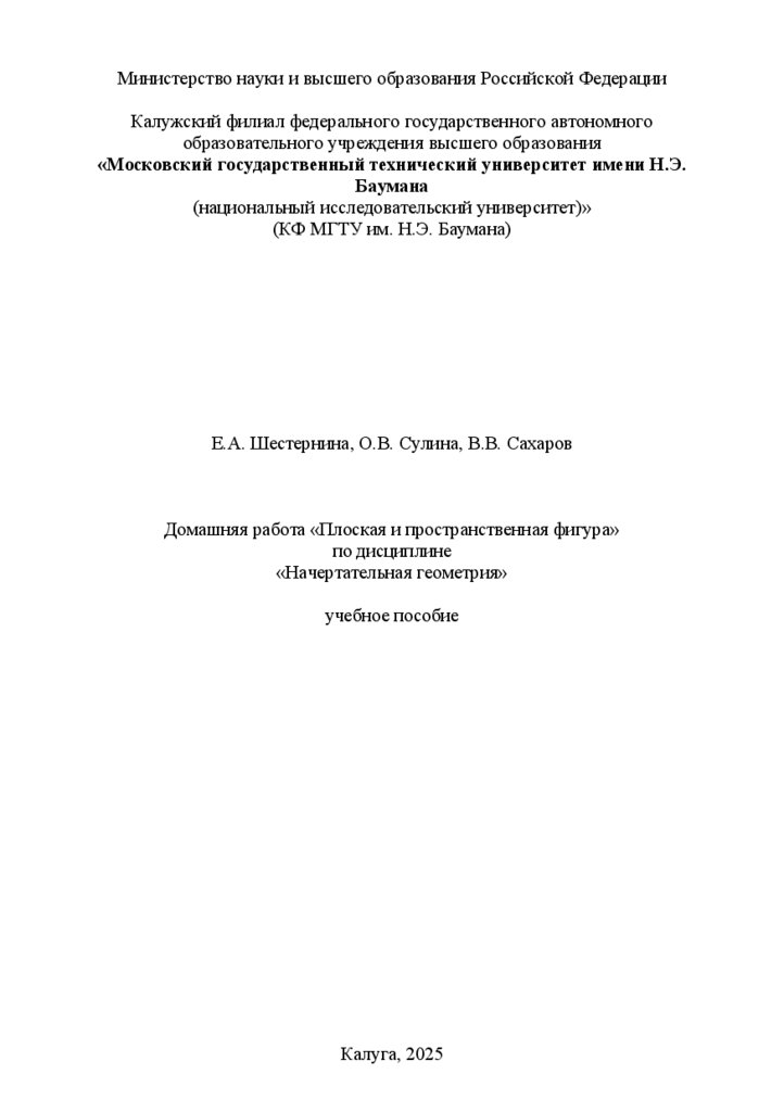 В.В. Сахаров.— Калуга: КФ МГТУ им. Н.Э. Баумана, 2025 .— 28с.