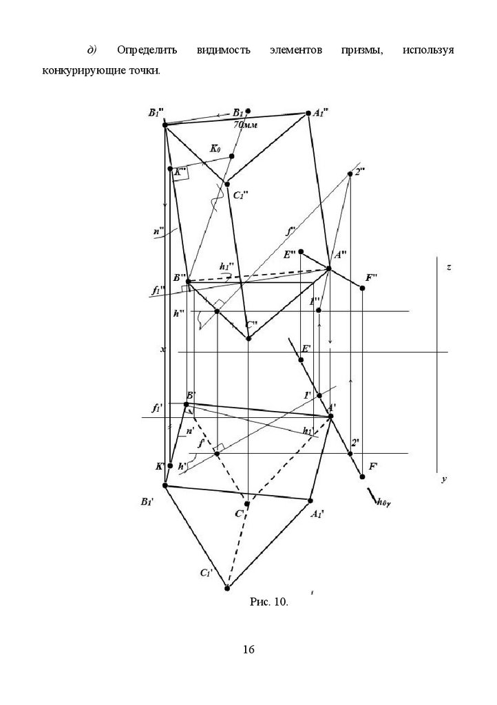2. Варианты № 11-20: построить проекции прямой призмы, высота
