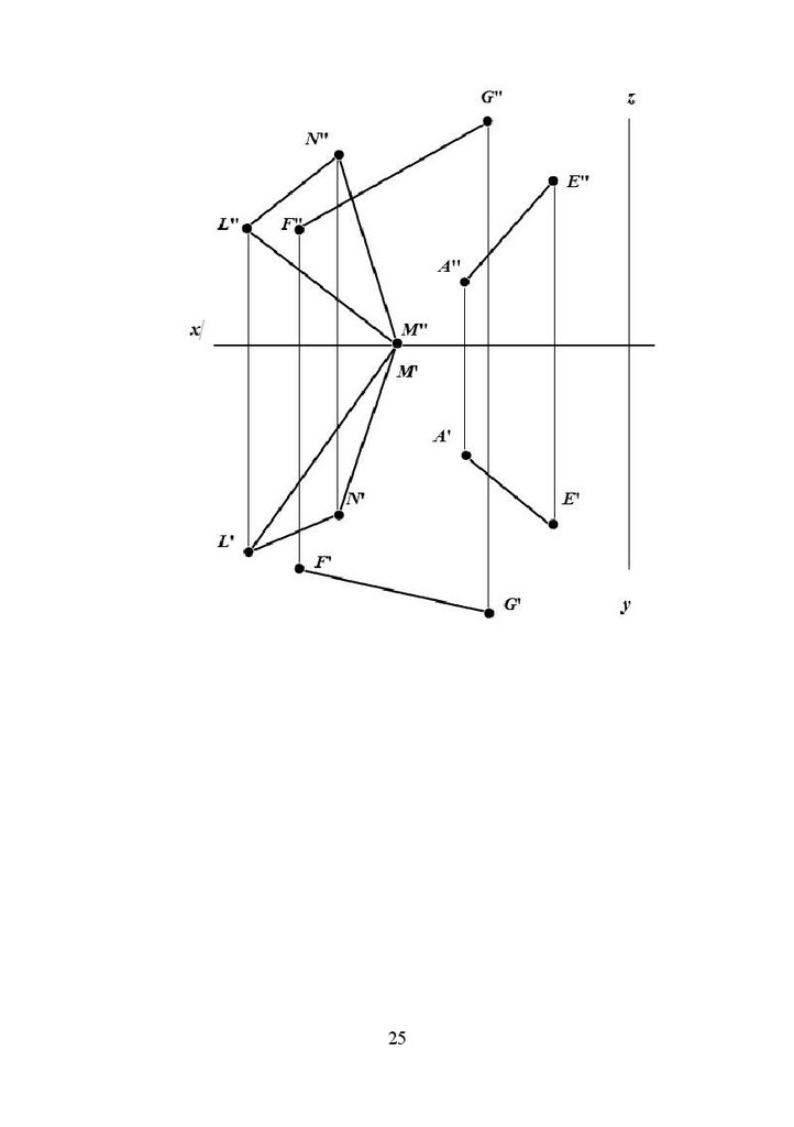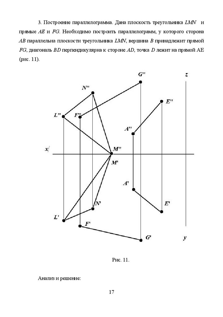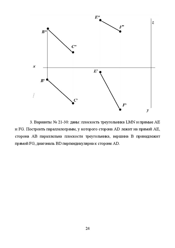 3. Варианты № 21-30: даны: плоскость треугольника LMN и прямые AEи FG. Построить параллелограмм, у которого сторона AD лежит на прямой AE,