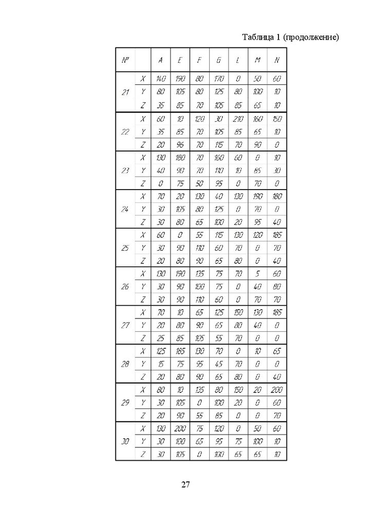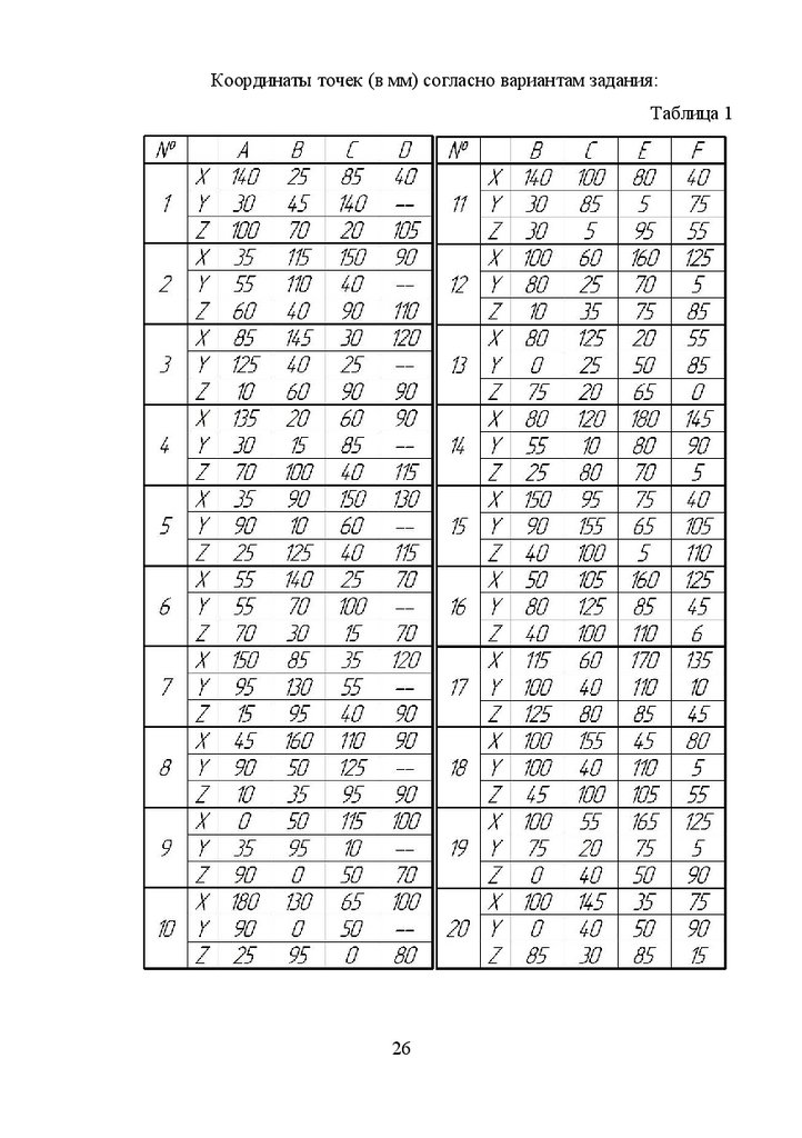 Координаты точек (в мм) согласно вариантам задания:Таблица 1
