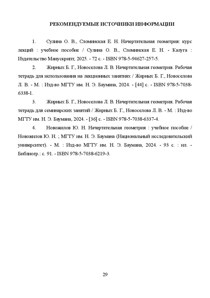 ДИСЦИПЛИНА: «Начертательная геометрия»