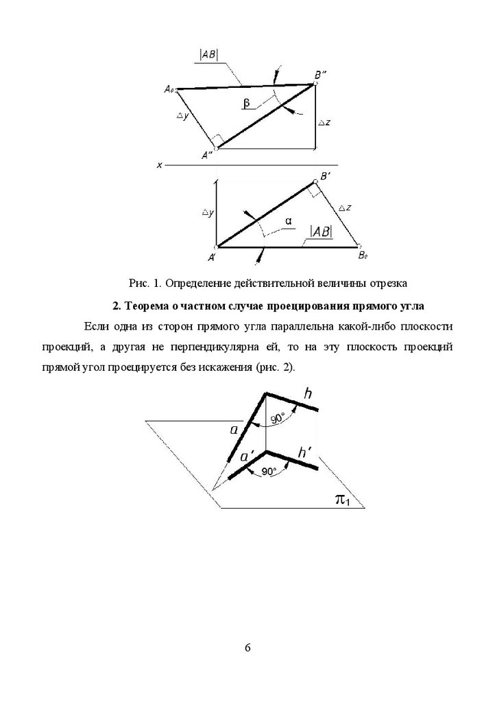 Рис. 1. Определение действительной величины отрезка2. Теорема о частном случае проецирования прямого угла