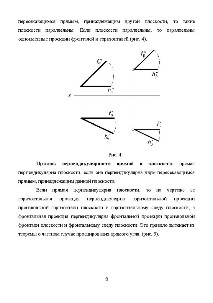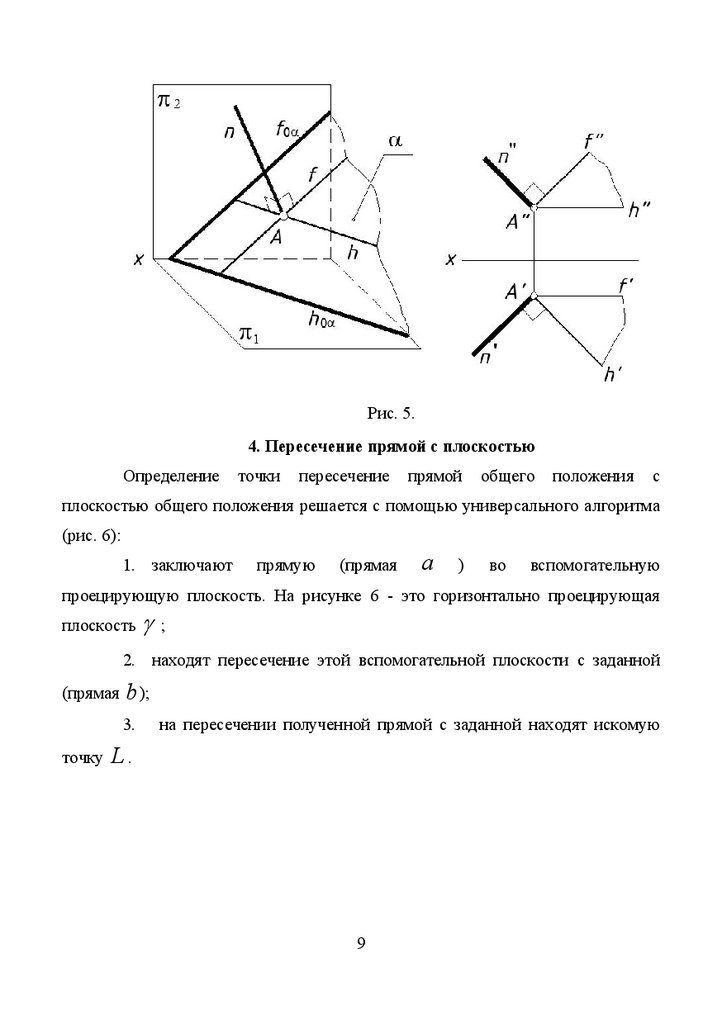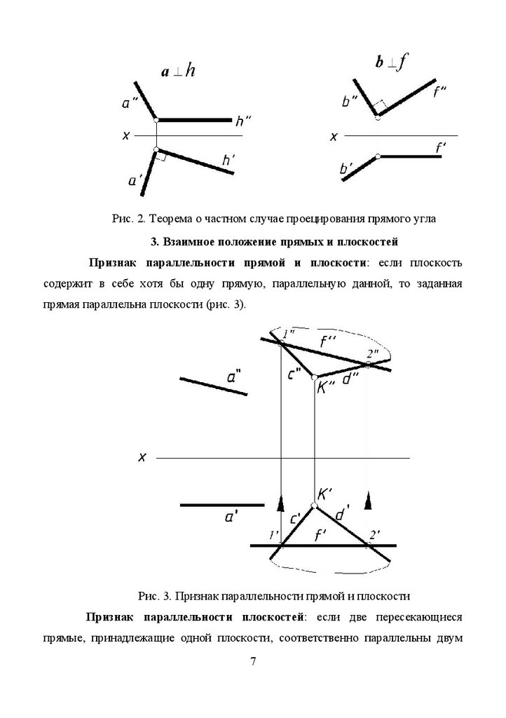 Рис. 2. Теорема о частном случае проецирования прямого угла3. Взаимное положение прямых и плоскостей