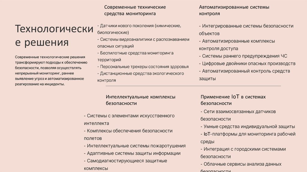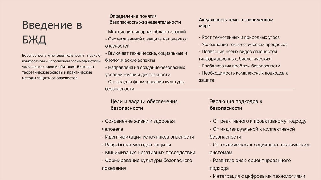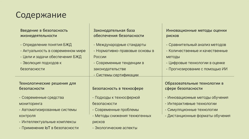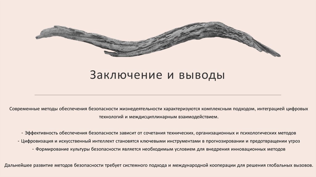 Заключение и выводыСовременные методы обеспечения безопасности жизнедеятельности характеризуются комплексным подходом, интеграцией цифровых