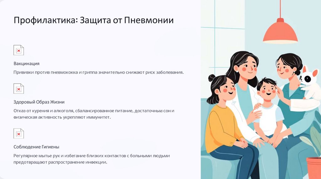Прививки против пневмококка и гриппа значительно снижают риск заболевания.