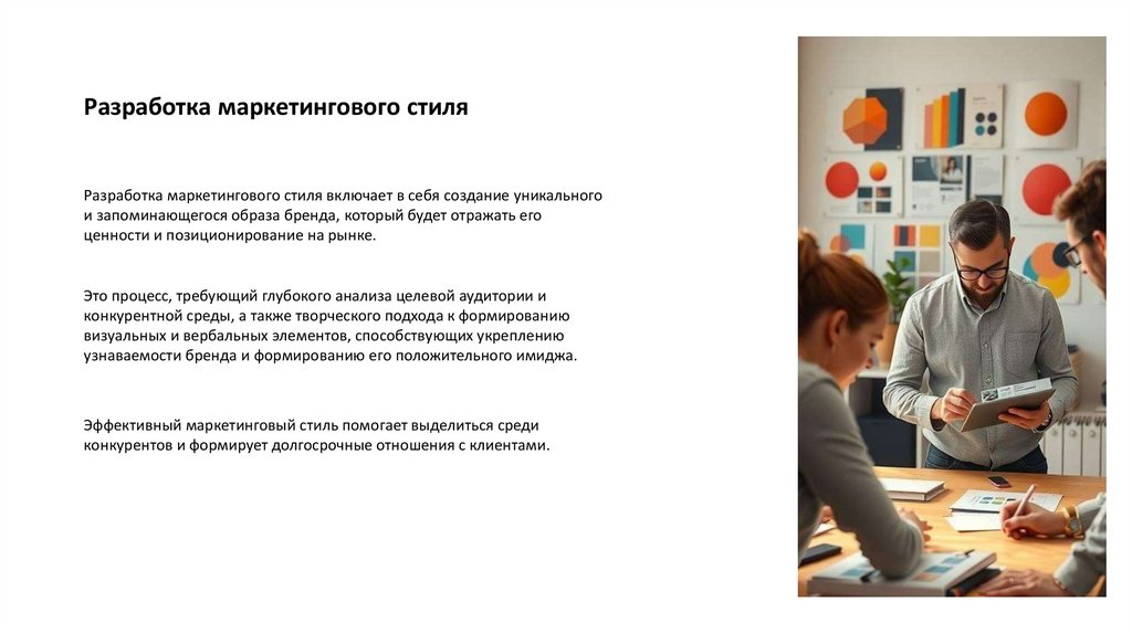 Разработка маркетингового стиляРазработка маркетингового стиля включает в себя создание уникального