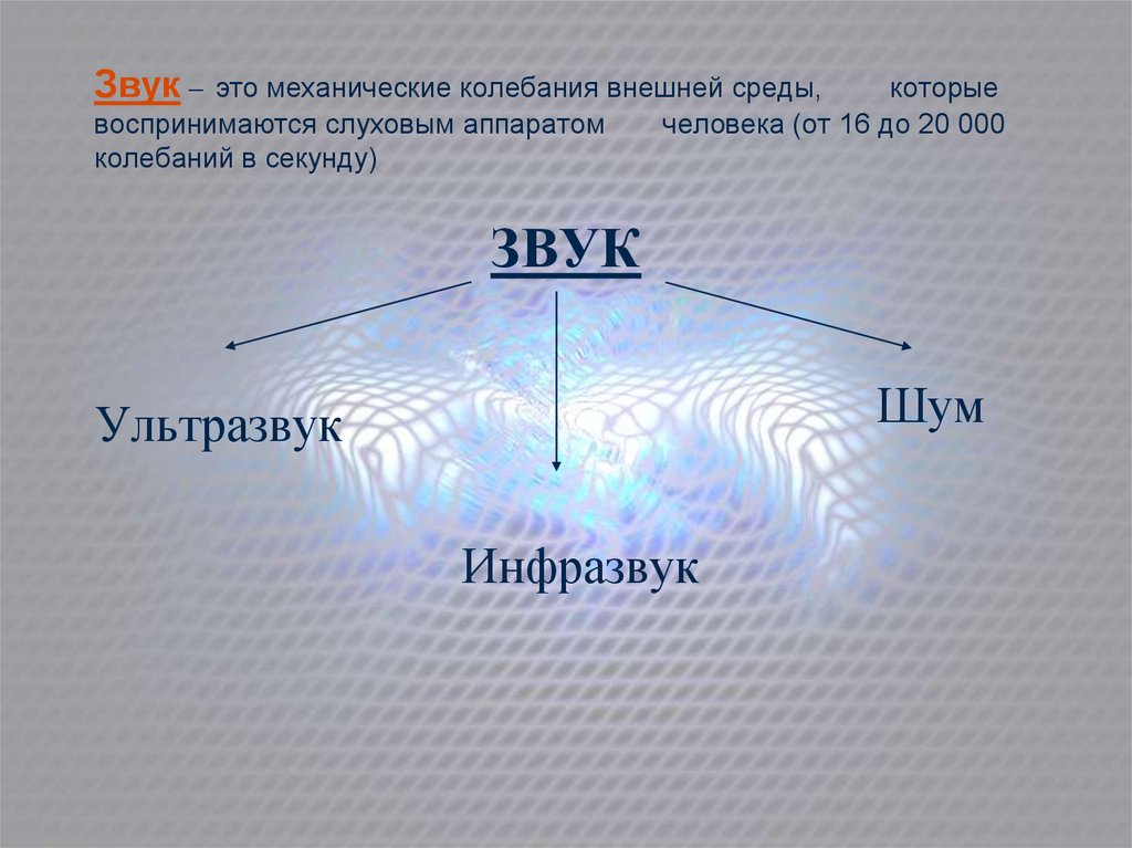Звук – это механические колебания внешней среды,воспринимаются слуховым аппаратом