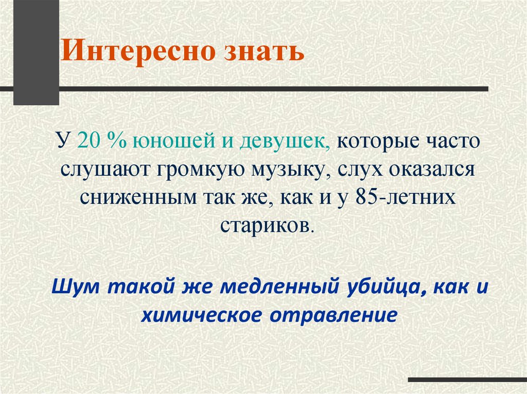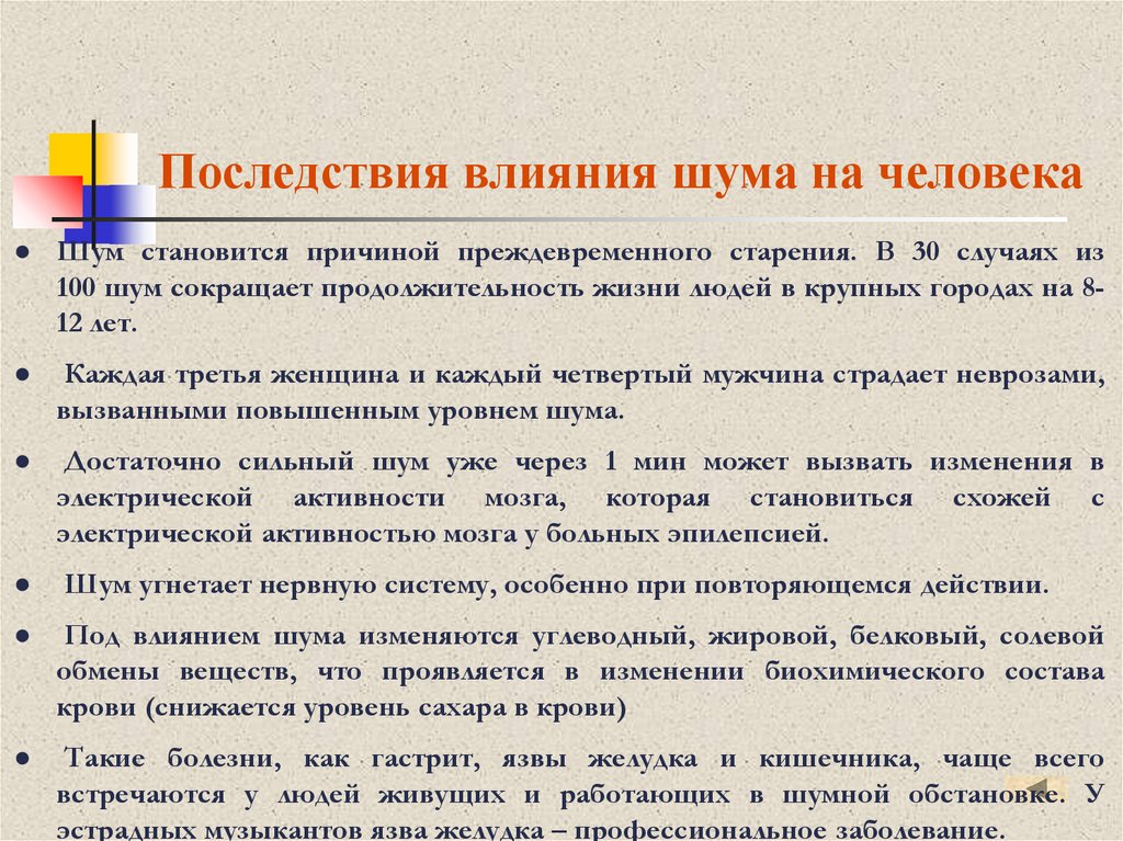 Последствия влияния шума на человека● Шум становится причиной преждевременного старения. В 30 случаях из