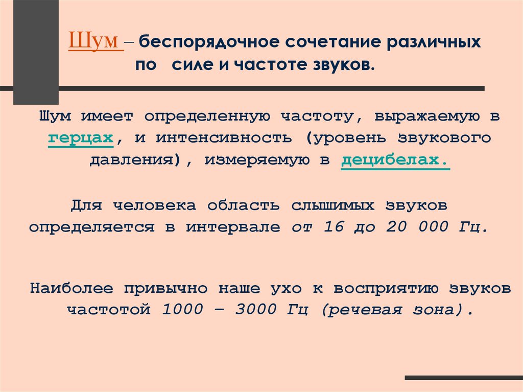 Шум – беспорядочное сочетание различныхпо силе и частоте звуков.