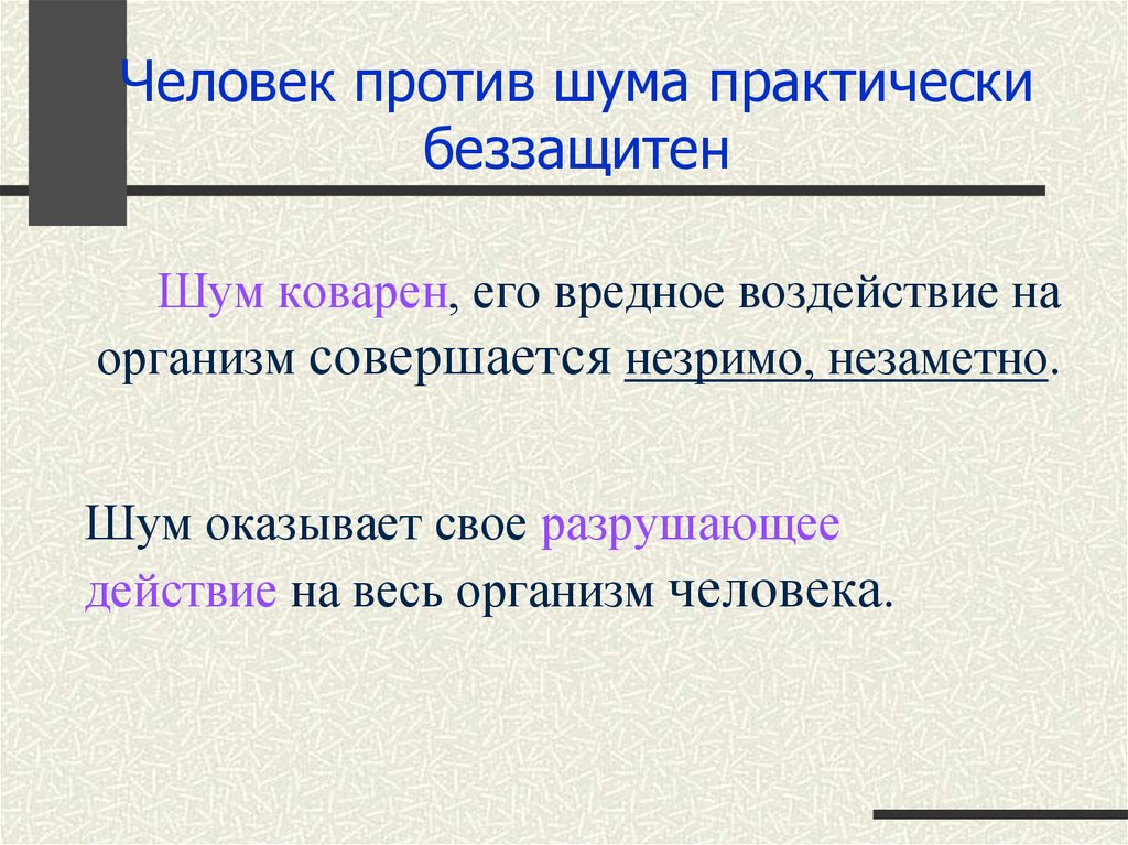 Шум угнетает нервную систему, особенно при повторяющемся действии.