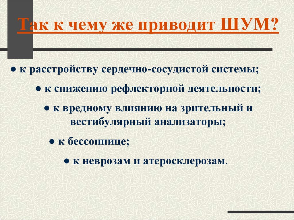 Так к чему же приводит ШУМ?● к расстройству сердечно-сосудистой системы;