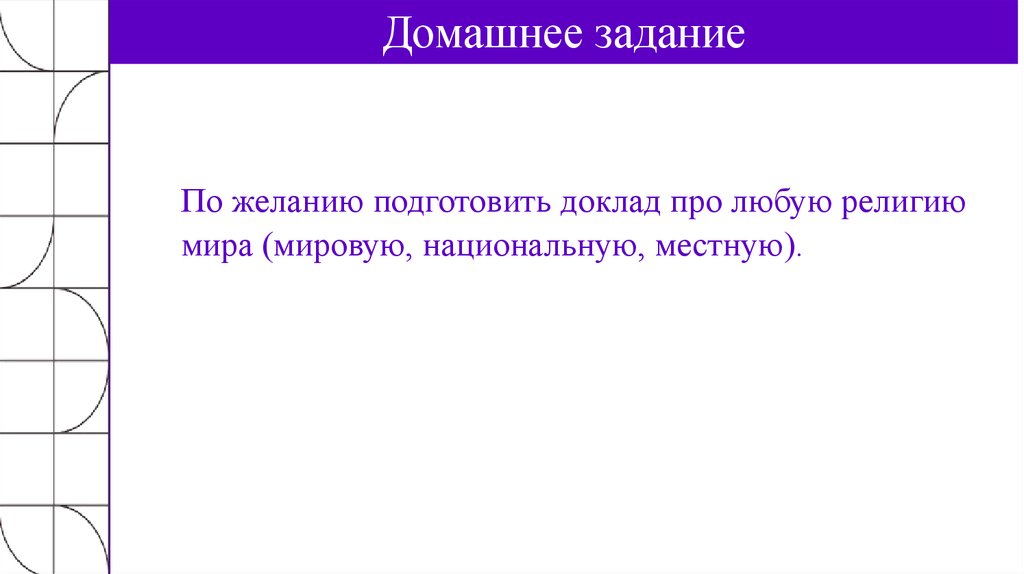 Домашнее заданиеПо желанию подготовить доклад про любую религию