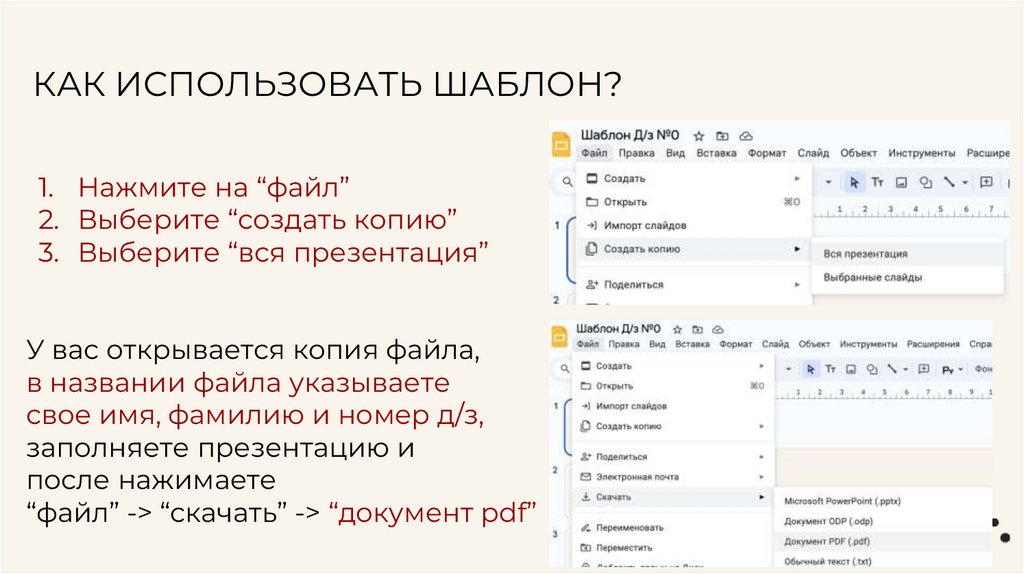 КАК ИСПОЛЬЗОВАТЬ ШАБЛОН?1. Нажмите на “файл”