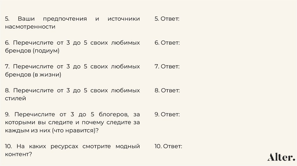 12. Как бы вы хотели видеть свой будущий стиль, если есть задача по еготрансформации (пять прилагательных). Приложите до 5 фото-референсов, которые