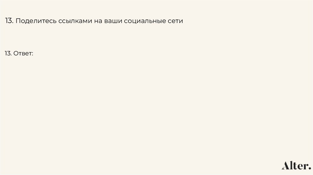 13. Поделитесь ссылками на ваши социальные сети13. Ответ: