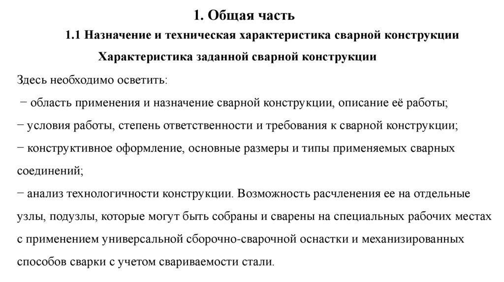 1. Общая часть1.1 Назначение и техническая характеристика сварной конструкции