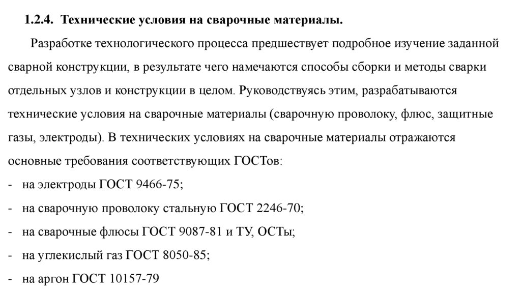 1.2.4. Технические условия на сварочные материалы.Разработке технологического процесса предшествует подробное изучение заданной
