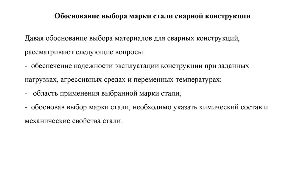 Обоснование выбора марки стали сварной конструкцииДавая обоснование выбора материалов для сварных конструкций,