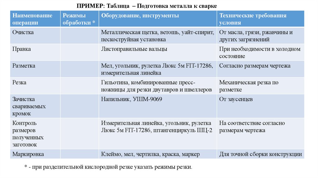 по зачистке кромок под сварку и их обезжириванию, по припускам на усадку сварных