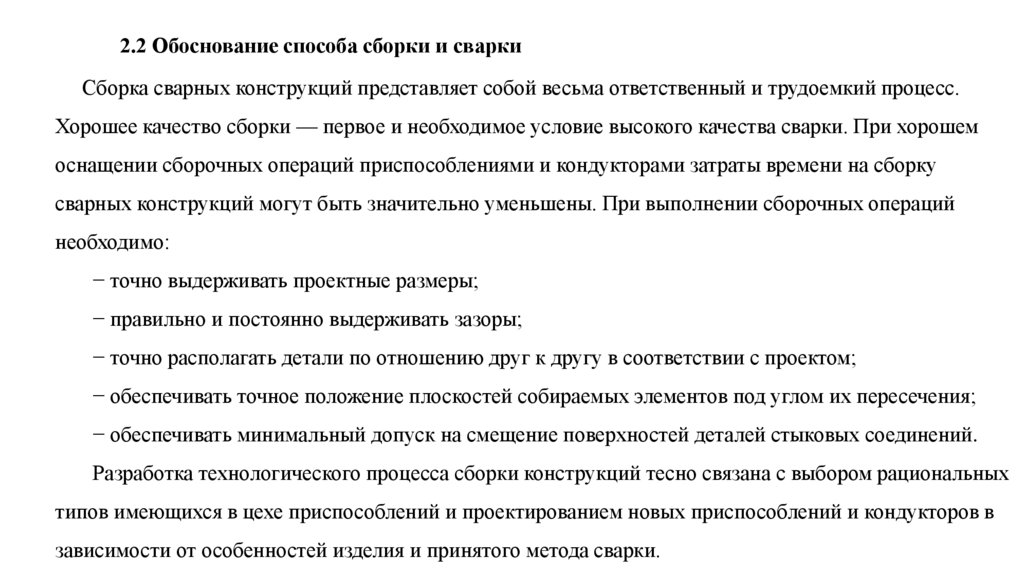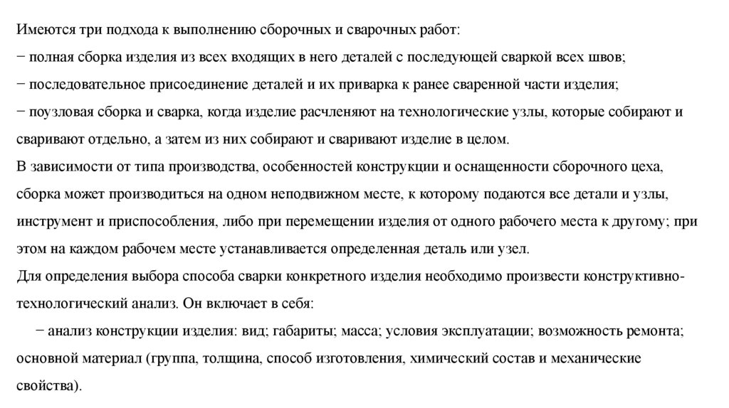сварной конструкции, в результате чего намечаются способы сборки и методы сварки