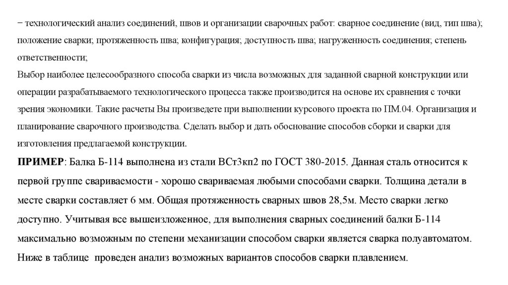 ответственности заданной сварной конструкции, точности её изготовления, с учетом