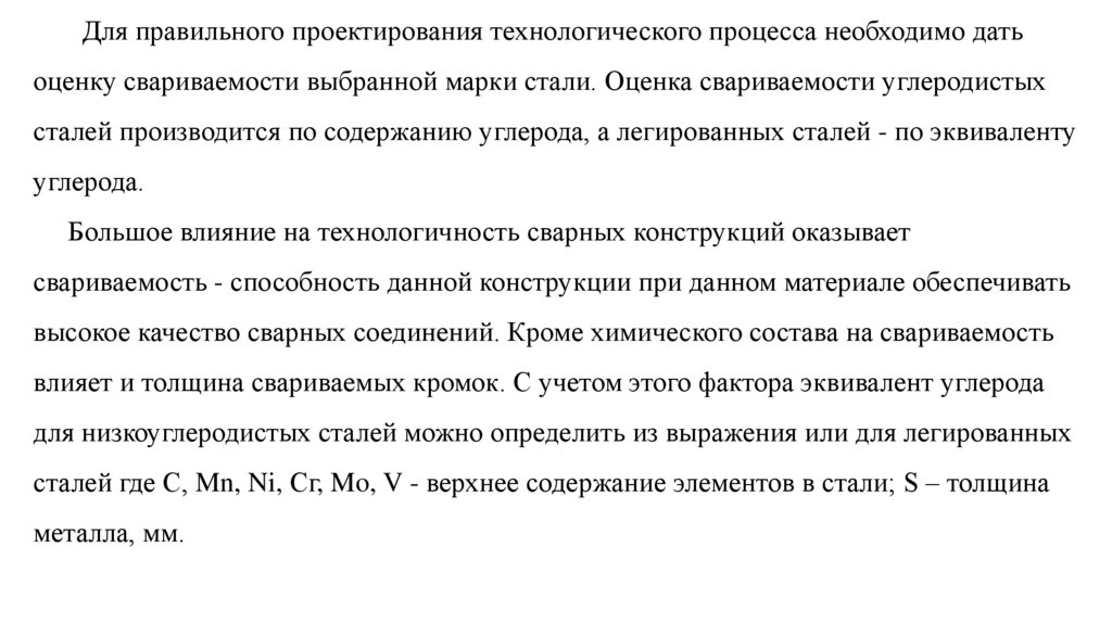 Для правильного проектирования технологического процесса необходимо датьоценку свариваемости выбранной марки стали. Оценка свариваемости углеродистых