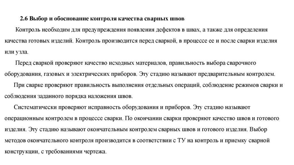 2.6 Выбор и обоснование контроля качества сварных швовКонтроль необходим для предупреждения появления дефектов в швах, а также для определения