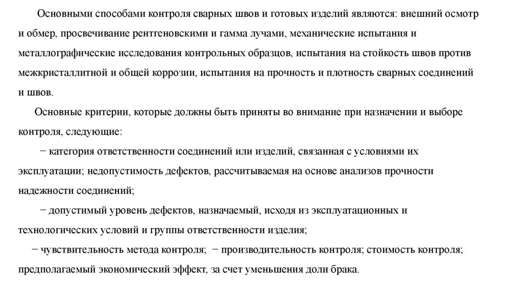 изделия. Эту стадию называют окончательным контролем сварных швов и готового изделия. Выбор
