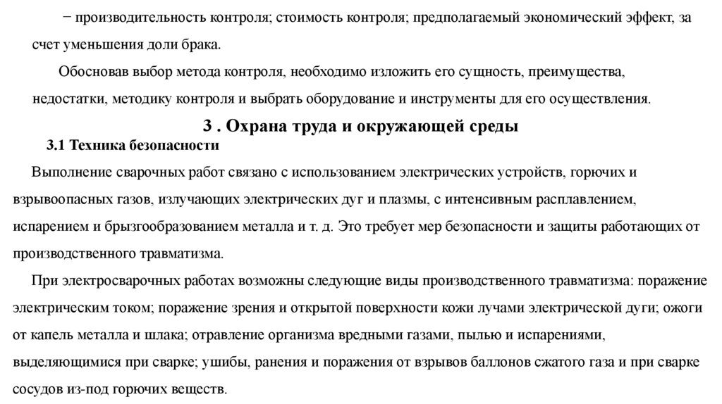 Обосновав выбор метода контроля, необходимо изложить его сущность, преимущества,