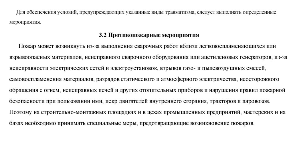 Для обеспечения условий, предупреждающих указанные виды травматизма, следует выполнять определенныемероприятия.